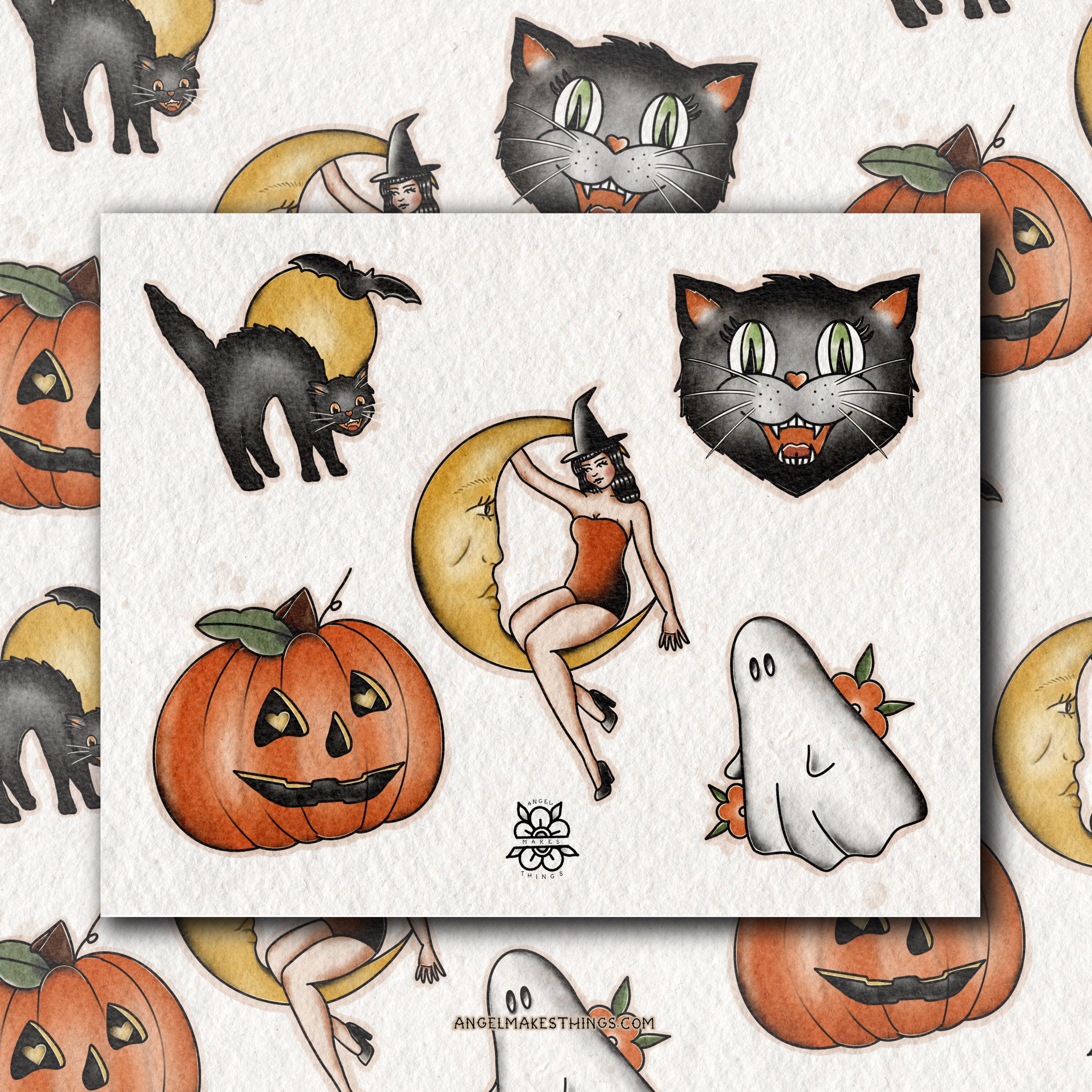 Halloween 2021 Traditional Tattoo Flash Sheet Etsy Uk